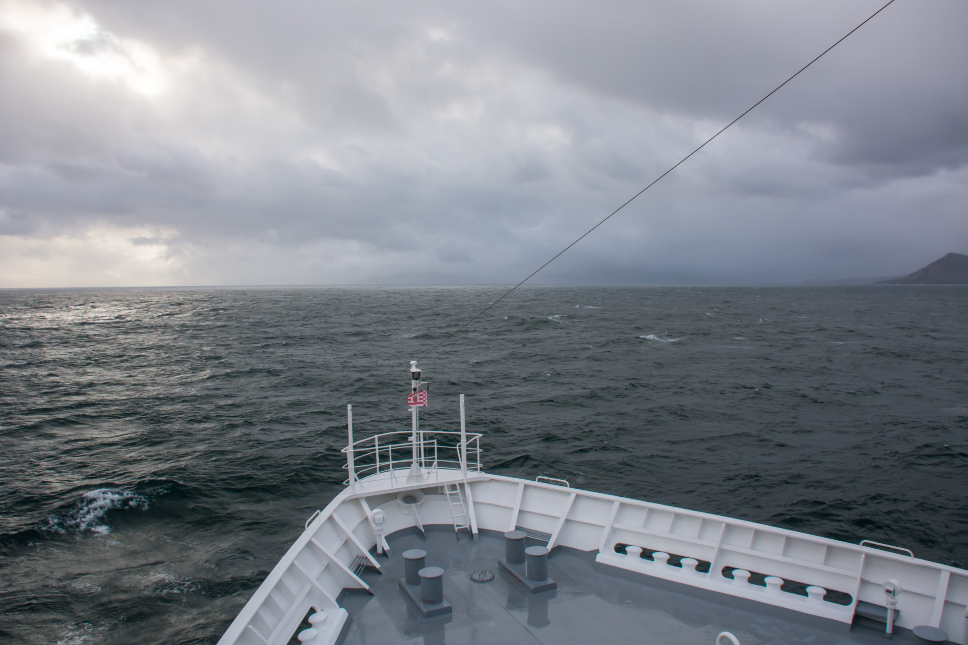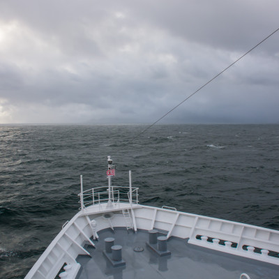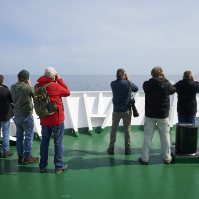 Auf dem Weg nach Südgeorgien überqueren wir die Antarktische Konvergenz. Innerhalb weniger Stunden kühlt sich die Temperatur erheblich ab und durch kollidierende Wassermassen steigt nährstoffreiches Wasser an die Oberfläche des Meeres. Durch dieses Phänomen wird eine Vielzahl von Seevögeln (unter anderem mehrere Arten von Albatrossen, sowie Sturmtaucher, Sturmvögel, Walvögel und Skuas) angelockt, die wir nun in unmittelbarer Nähe des Schiffes beobachten können.