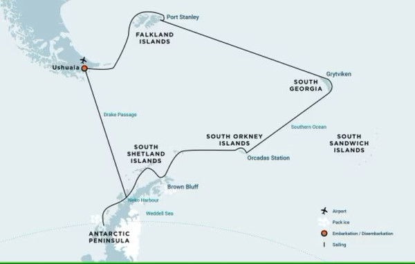 Am Nachmittag des 10. Tages und abhängig von den Bedingungen werden wir nach Süden in Richtung der South Orkney Islands segeln.