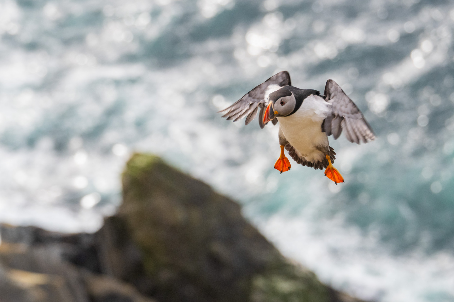 An den hohen Klippen brüten tausende Basstölpel in einer fast unwirklichen Kulisse. Wir können sie im Flug und an den Nestern fotografieren. Besonders faszinierend ist auch die Nähe zu den Papageitauchern, die hier oft neugierig an den Klippenkanten verweilen. Das wechselhafte schottische Licht sorgt dabei für eine unvergleichliche Atmosphäre.