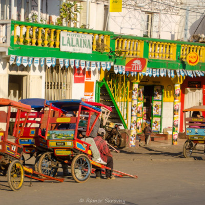 Wir verlassen das Land der Bara und kommen nun in das Land der Sakalava, die dort vorherrschende ethnische Gruppe. Die Erde wird immer trockener und manchmal kann man in der Ferne vereinzelt Baobab Bäume sehen. Immer wieder kommt man durch Dörfer mit kleinen Märkten – eine gute Möglichkeit um zu halten.Nachmittags erreichen wir Tulear, einst ein wichtiges Verwaltungszentrum der Franzosen. Wochentags ist immer ein reges Treiben auf dem Markt zu beobachten. Danach fahren wir nach Ifaty – eine staubige Piste lässt nicht vermuten, daß wir dort ein sehr gemütliches Quartier vorfinden. (F)